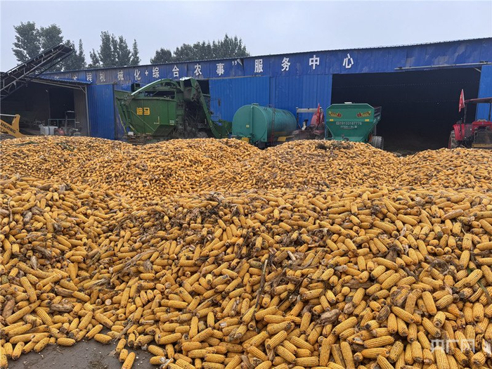 在河南某县,配合社的院子里堆满了行将要烘干的玉米。图片开头:央广网